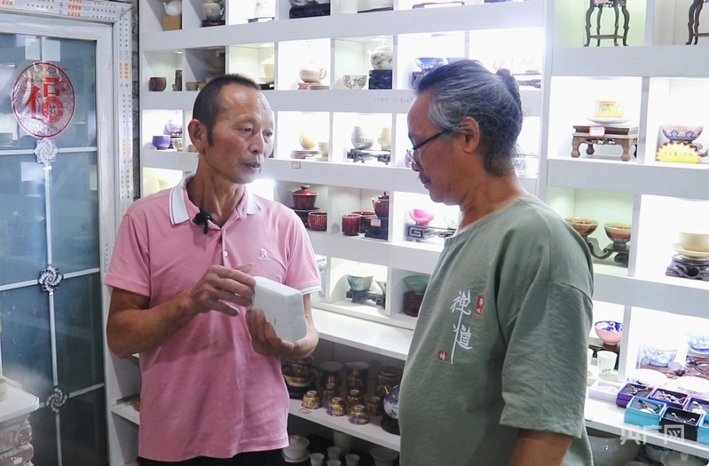 在繞南陶瓷主題園區(qū),詹金發(fā)和同事給游客分別展示、講解釉果制作技藝和水碓加工技藝,讓更多人對(duì)傳統(tǒng)的陶瓷加工技藝產(chǎn)生興趣。詹金發(fā)這一講解就是十多年。