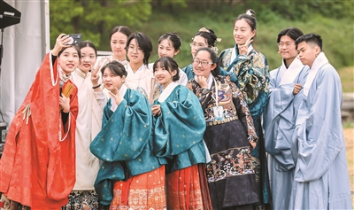 “穿著傳統(tǒng)服飾,常常伴隨著對(duì)古代禮儀和文化習(xí)俗的學(xué)習(xí)和效仿,如禮茶、撫琴等,年輕人得以更深入地了解和體驗(yàn)中華傳統(tǒng)文化的豐富內(nèi)涵,接受傳統(tǒng)文化的熏陶?!表n丹說(shuō)。