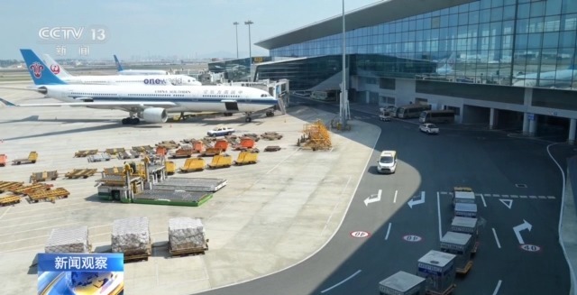 東莞港國(guó)際空運(yùn)有限公司副總經(jīng)理 蕭智亮:我們空港中心是全球首個(gè)直達(dá)機(jī)場(chǎng)空側(cè)的跨關(guān)境海空聯(lián)運(yùn)項(xiàng)目,貨物在空港中心完成裝車(chē),送達(dá)我們的專(zhuān)用碼頭,通過(guò)海運(yùn)的方式到達(dá)香港國(guó)際機(jī)場(chǎng)飛往全球。