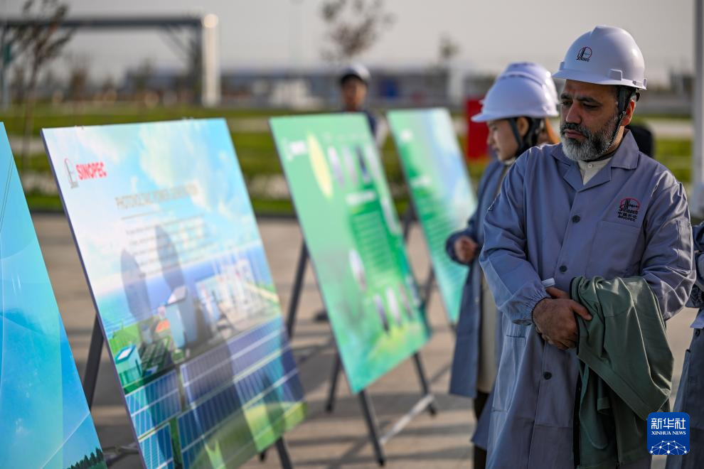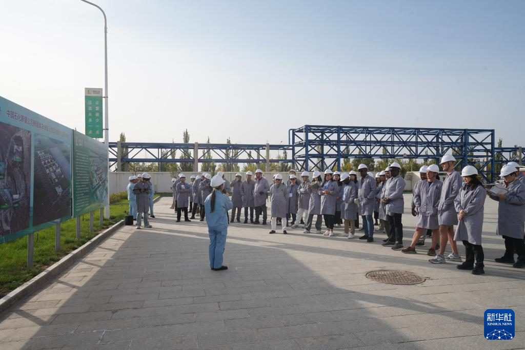 10月16日,嘉賓在中國石化新疆庫車綠氫示范項(xiàng)目參觀。新華社記者 陳朔 攝