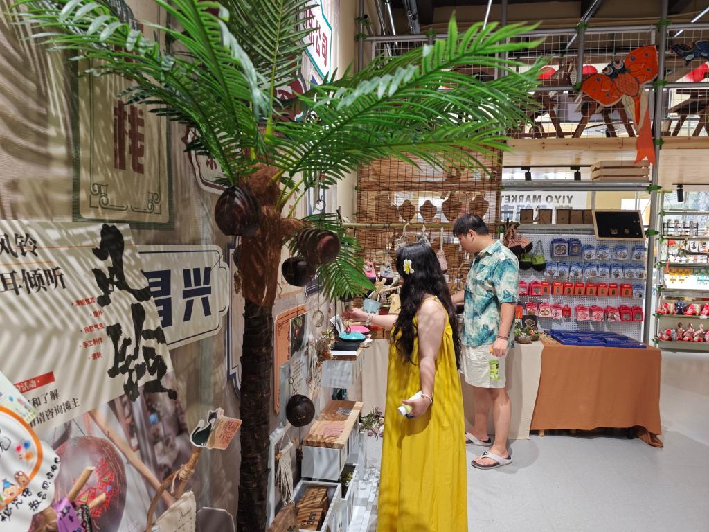 在老街一家非遺文創(chuàng)店里,來(lái)自浙江杭州的游客王銣斐正在挑選用椰子殼制作的冰箱貼,準(zhǔn)備作為禮物送給朋友。