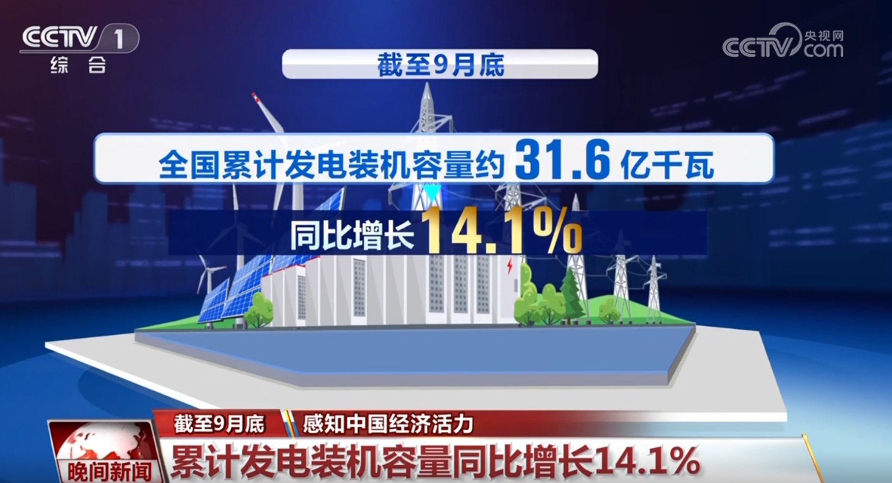 國(guó)家能源局10月21日發(fā)布數(shù)據(jù)顯示,截至9月底,全國(guó)累計(jì)發(fā)電裝機(jī)容量約31.6億千瓦,同比增長(zhǎng)14.1%。其中,太陽能發(fā)電裝機(jī)容量約7.7億千瓦,同比增長(zhǎng)48.3%;風(fēng)電裝機(jī)容量約4.8億千瓦,同比增長(zhǎng)19.8%,我國(guó)能源電力綠色轉(zhuǎn)型持續(xù)深入。