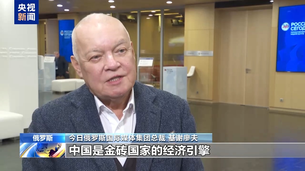 今日俄羅斯國際媒體集團總裁 基謝廖夫:中國是金磚國家的經濟引擎,其他國家也作出了應有的貢獻,我也非常希望金磚國家繼續(xù)加強人文合作。