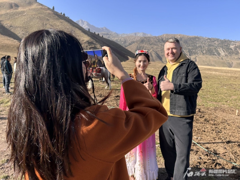 10月21日,“中國有約·相約新疆”2024國際媒體采訪活動走進(jìn)阿克蘇地區(qū),來自俄羅斯、意大利、比利時(shí)等9個國家的自媒體創(chuàng)作者們,來到位于托木爾峰腳下的天山托木爾景區(qū)·塔村,感受這里的旅游熱度。