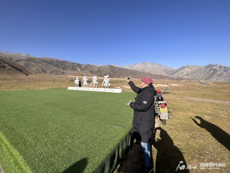 哥倫比亞籍自媒體創(chuàng)作者高飛覺得和盛夏草原濃烈的綠相比,秋日草原別有一番風(fēng)味。石榴云/新疆日報(bào) 記者張小宓攝