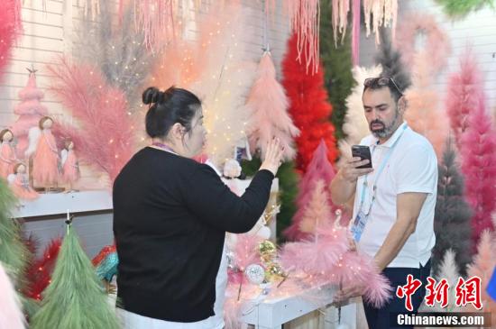 第136屆廣交會(huì)第二期的園林用品展區(qū)吸引采購(gòu)商(右)咨詢(xún)洽談。