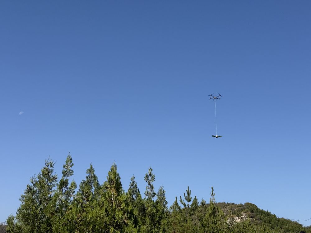 “慢點兒放樹苗!”在陜西省延安市宜川縣的一處山坡上,“懸崖造林隊”隊長王永紅和隊員們將樹苗掛到無人機上,操作手柄,看著無人機飛向另一側山坡?!耙郧拔覀冎荒芗缈副绸W樹苗上山,一天上下山一二十次,今年引進無人機后,效率高多了!”王永紅話音剛落,無人機已返回,等待下一次運輸。