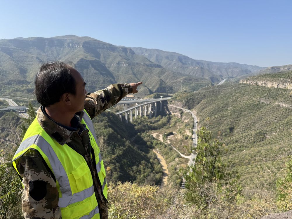 “懸崖造林隊”隊長王永紅介紹種樹情況。