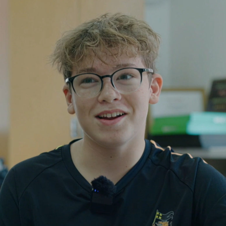 一頭卷發(fā)、戴著眼鏡的本杰明是個熱情、開朗的男孩,在上?;蒽`頓外籍人員子女學(xué)校讀8年級。他的爸爸大衛(wèi)來自英國,是一名廚師。媽媽惠娜是匈牙利人,在惠靈頓學(xué)校擔任音樂老師。姐姐艾瑪15歲了,和本杰明讀同一所學(xué)校。5年前,他們一家四口搬到上海生活。