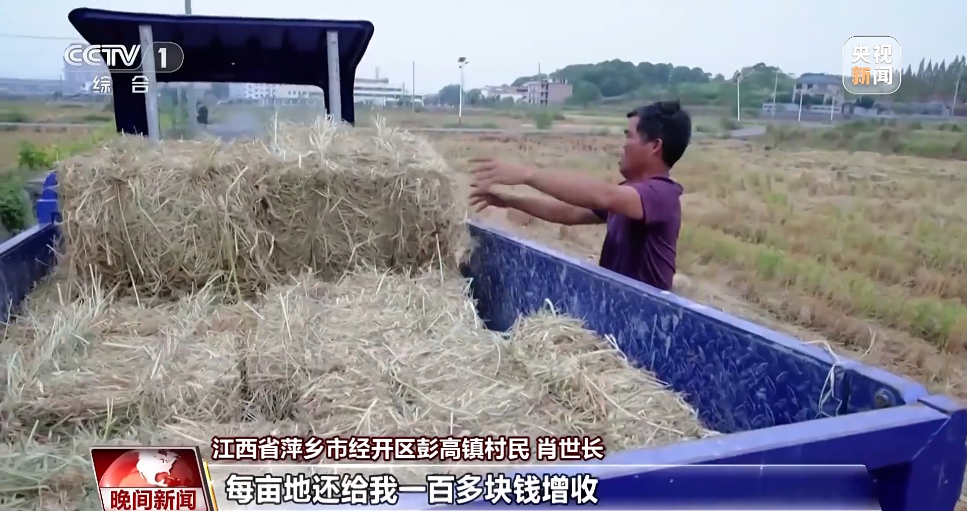 江西省萍鄉(xiāng)市經(jīng)開區(qū)彭高鎮(zhèn)村民 肖世長:秸稈處理很麻煩,運(yùn)走還需要自己額外花錢請人過來幫忙?,F(xiàn)在他們上門回收,每畝地還給我一百多塊錢增收。