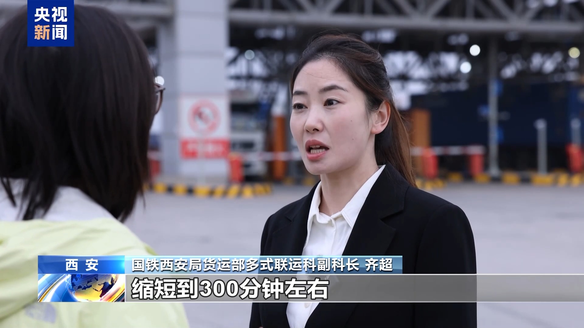 國鐵西安局貨運部多式聯(lián)運科副科長 齊超:貨物集結(jié)時間從原來的7天左右縮短到3天左右,貨物的進站作業(yè)時間從原來將近900分鐘縮短到300分鐘左右。
