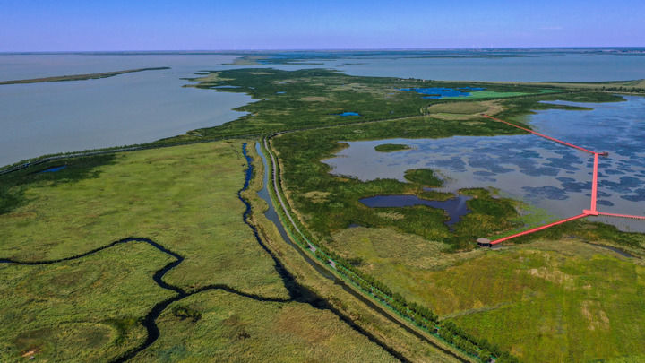 為解決這一問(wèn)題,1976年,當(dāng)?shù)匾苫ń氩楦珊8刹咳罕娂缣羰痔?,歷經(jīng)8年修通運(yùn)河,查干湖面積從50多平方公里擴(kuò)大到500多平方公里。