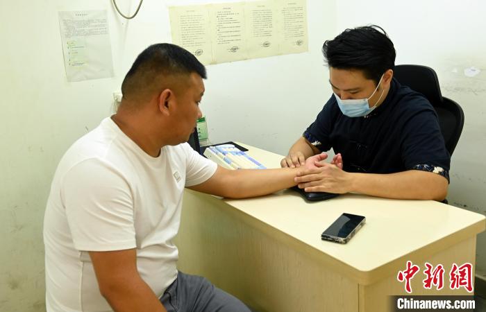 圖為陳冠巖在給患者號(hào)脈。 中新社記者 蔣雪林 攝