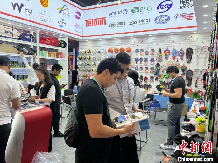 浙江天龍網(wǎng)球股份有限公司副總經(jīng)理李國華介紹:“我們帶來了近年來在歐美地區(qū)興起的匹克球產(chǎn)品,這款融合了多項(xiàng)球類運(yùn)動(dòng)元素的新潮運(yùn)動(dòng)產(chǎn)品受到了不少海外客戶的青睞?!?/p>