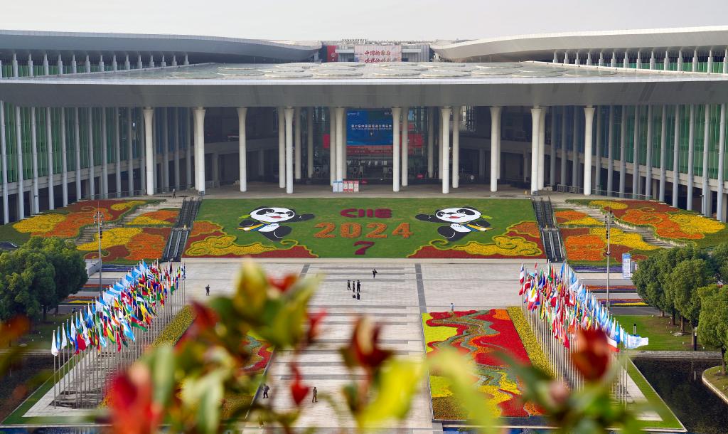 這是11月2日拍攝的第七屆中國國際進口博覽會舉辦地——國家會展中心(上海)南廣場。新華社記者 劉穎 攝