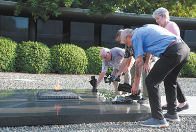 飛虎隊代表團成員向南京大屠殺死難者獻上白菊。