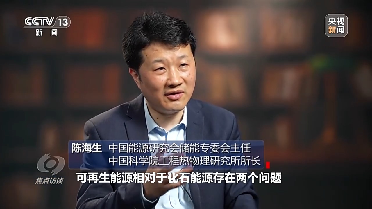 中國(guó)能源研究會(huì)儲(chǔ)能專委會(huì)主任、中科院工程熱物理研究所所長(zhǎng) 陳海生:可再生能源相對(duì)于化石能源存在兩個(gè)問題,一個(gè)就是可再生能源的能量密度比較低,比如說風(fēng)能、太陽能,這就需要轉(zhuǎn)換成更加強(qiáng)有力的能源形式,比如說我們通過風(fēng)力發(fā)電、光伏發(fā)電轉(zhuǎn)化成電。另外一方面就是可再生能源存在著間歇性、不穩(wěn)定性,就是我們通常所說的靠天吃飯,這就需要儲(chǔ)能,將可再生能源轉(zhuǎn)化成連續(xù)穩(wěn)定的能源,就對(duì)新型儲(chǔ)能提出了重大的需求。