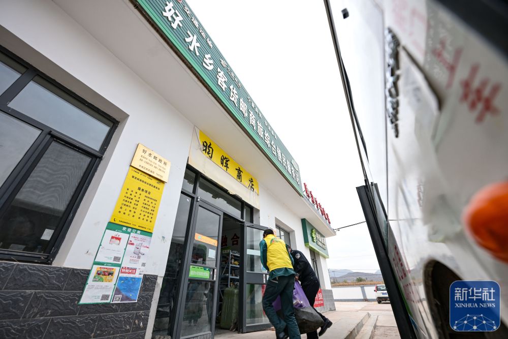 11月9日,隆德縣公交車司機和好水鄉(xiāng)客貨郵商旅綜合便民服務站經(jīng)營者從公交車上卸下快遞物品。