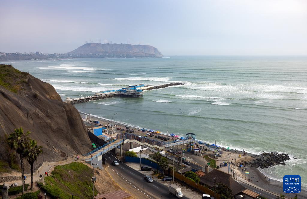這是11月6日在秘魯首都利馬的愛(ài)情公園拍攝的海岸線。