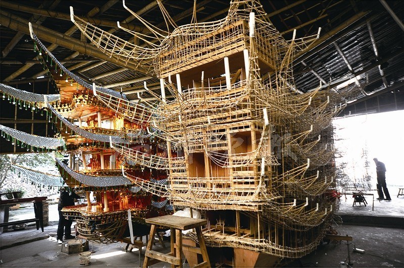 做“首飾龍”的匠人,沒有圖紙,全憑師傅一生的經(jīng)驗(yàn)來規(guī)劃不同船型和運(yùn)動(dòng)方式。林順奎制作的首飾龍身上有大大小小80多個(gè)樓閣、亭臺,濃縮了《封神榜》《西游記》等80多出戲,有近300個(gè)形態(tài)各異、從事各行各業(yè)的古今人物。