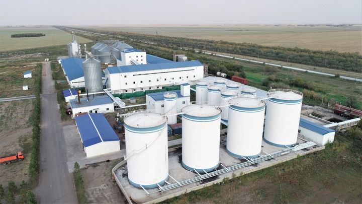 這是2022年9月2日在哈薩克斯坦北哈薩克斯坦州拍攝的愛菊農(nóng)產(chǎn)品物流加工園區(qū)(無人機(jī)照片)。新華社發(fā)(奧斯帕諾夫 攝)