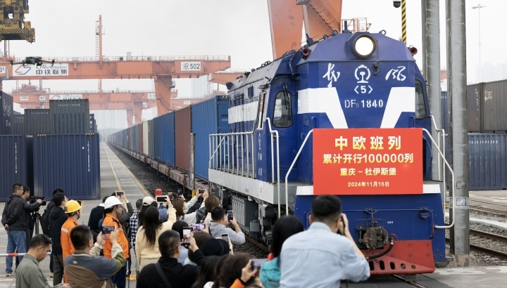 2024年11月15日10時(shí)20分,中歐班列第10萬(wàn)班列車從重慶發(fā)出