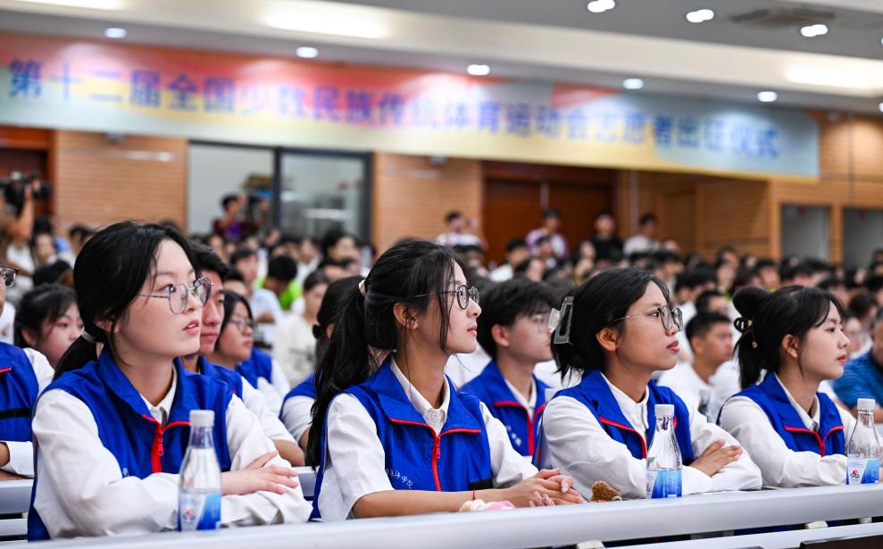 11月4日,第十二屆全國少數(shù)民族傳統(tǒng)體育運(yùn)動(dòng)會(huì)志愿者在出征儀式上。新華社記者 楊冠宇 攝