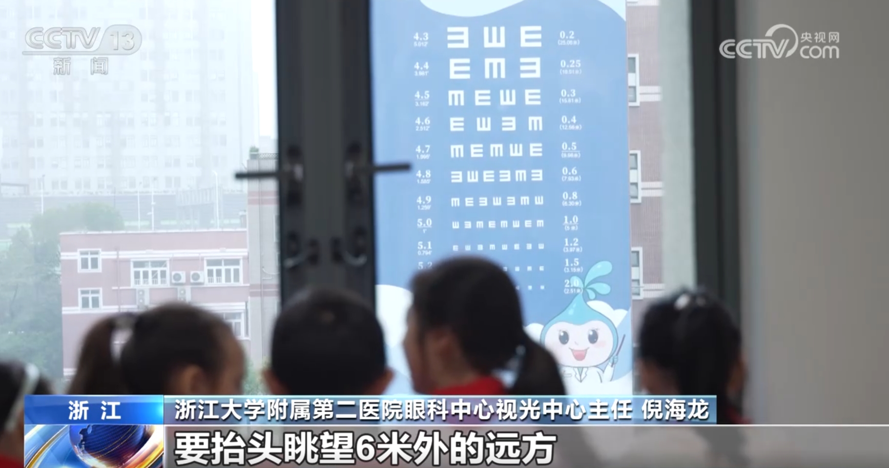保護(hù)視力,既需要營(yíng)造有益視力的學(xué)習(xí)環(huán)境,還需要孩子們加強(qiáng)視力鍛煉。在浙江湖州南潯區(qū)善璉學(xué)校,每天上下午各一個(gè)時(shí)間段,學(xué)生們就會(huì)在老師的帶領(lǐng)下做“望遠(yuǎn)心遠(yuǎn)”課間操,由近而遠(yuǎn)觀察100米以外的物體,可以辨認(rèn)教學(xué)樓外墻的大幅視力表,也可以看看空中飛翔的小鳥,還可以數(shù)數(shù)樹上結(jié)的果子,通過(guò)遠(yuǎn)近交替聚焦,鍛煉遠(yuǎn)視能力,預(yù)防近視。