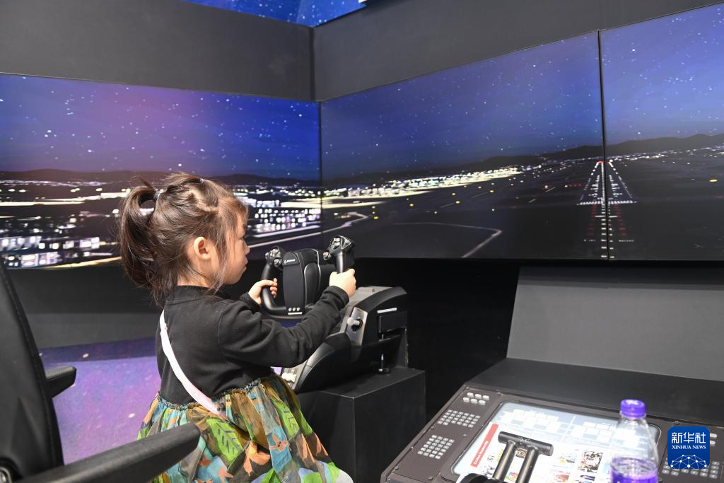 11月19日,在2024年世界互聯(lián)網(wǎng)大會“互聯(lián)網(wǎng)之光”博覽會上,小朋友在數(shù)字飛行模擬艙體驗操作飛機。