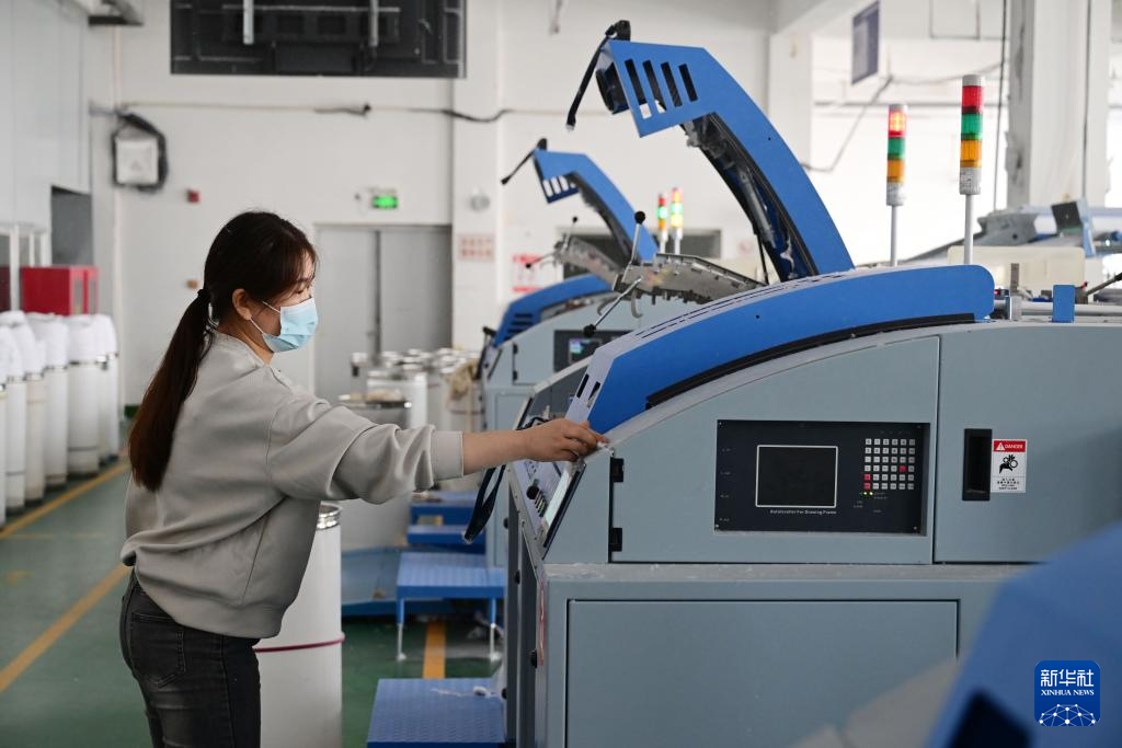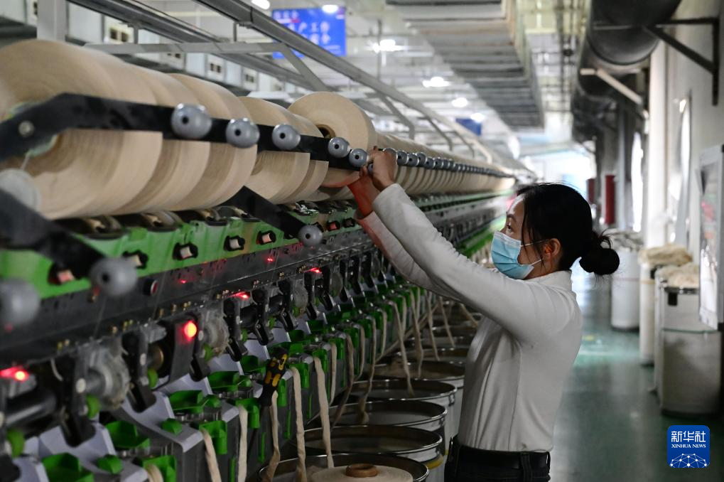 10月25日,工作人員在安徽省天助紡織科技集團股份有限公司的生產(chǎn)車間里工作。新華社記者 周牧 攝