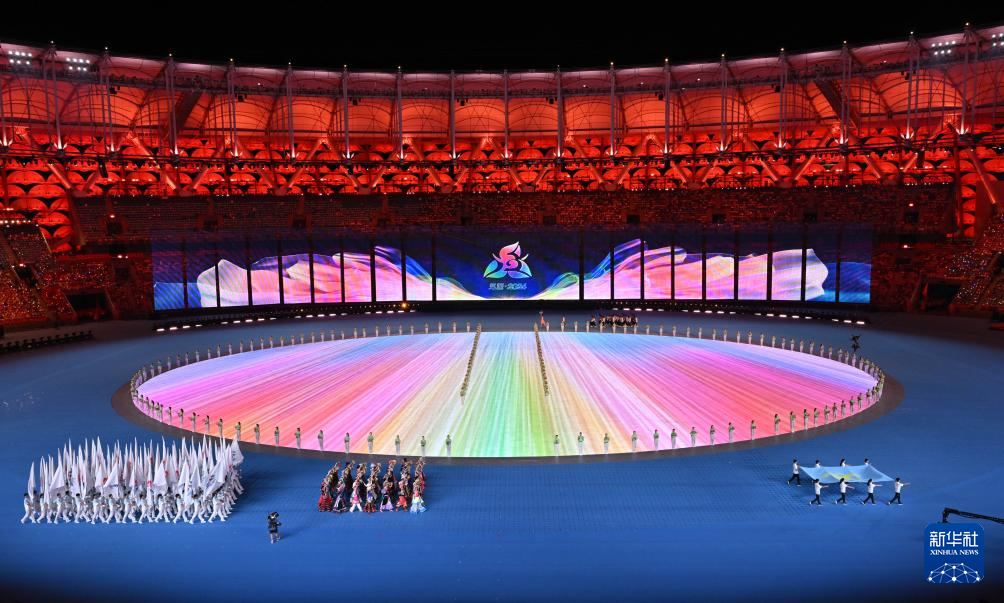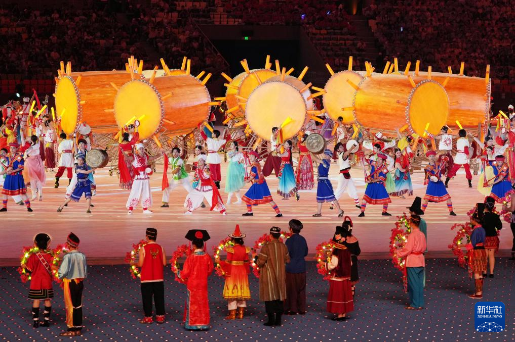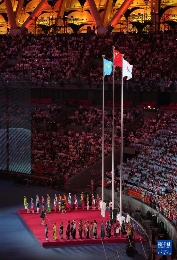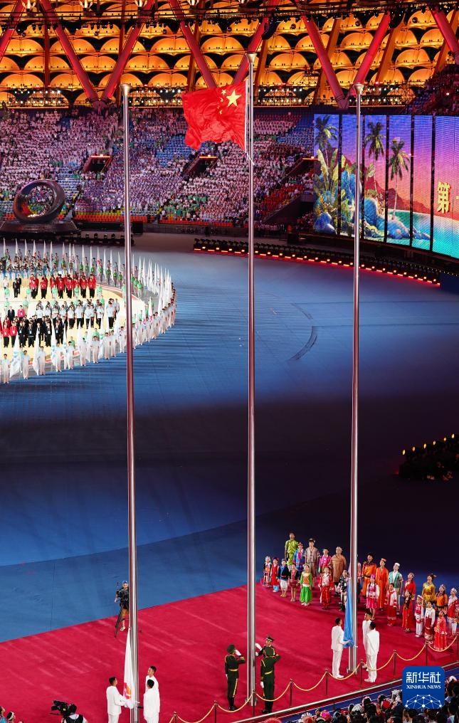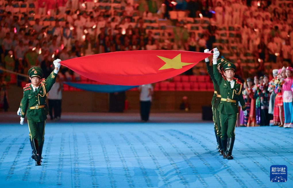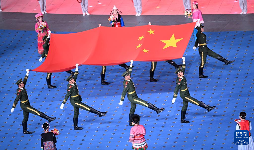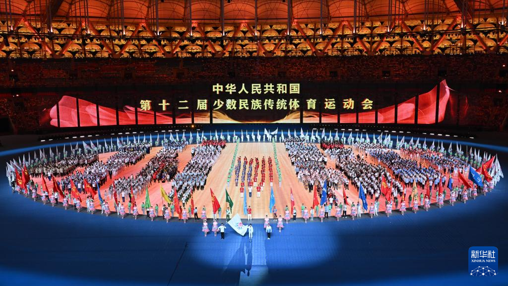 11月22日,開(kāi)幕式現(xiàn)場(chǎng)升起中華人民共和國(guó)國(guó)旗、中華人民共和國(guó)少數(shù)民族傳統(tǒng)體育運(yùn)動(dòng)會(huì)會(huì)旗和中華人民共和國(guó)第十二屆少數(shù)民族傳統(tǒng)體育運(yùn)動(dòng)會(huì)會(huì)旗。