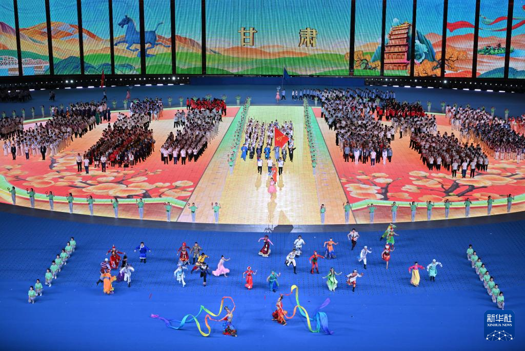 11月22日,甘肅省代表團(tuán)在開(kāi)幕式上入場(chǎng)。