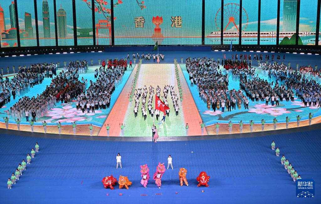 11月22日,香港特別行政區(qū)代表團(tuán)在開(kāi)幕式上入場(chǎng)。