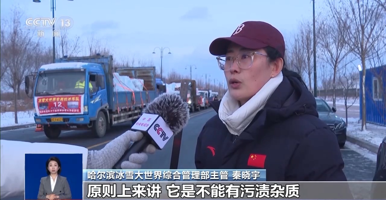哈爾濱冰雪大世界綜合管理部主管 秦曉宇:我們首先要看冰的透光度,原則上講,不能有污漬雜質(zhì)或者明顯的污殼,才能夠給廣大游客呈現(xiàn)一個美輪美奐的冰雪大世界。
