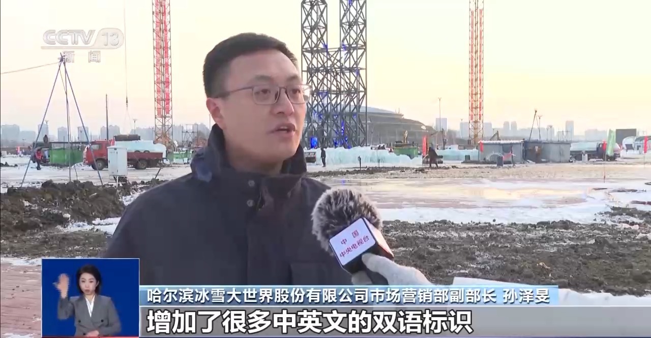 哈爾濱冰雪大世界股份有限公司市場營銷部副部長 孫澤旻:增加了很多中英文的雙語標識,同時增加了英文的導(dǎo)游導(dǎo)覽服務(wù)。為了方便外國游客可以在園區(qū)內(nèi)購票,增加了可以識別護照、識別國際支付的支付系統(tǒng)和購票系統(tǒng)。