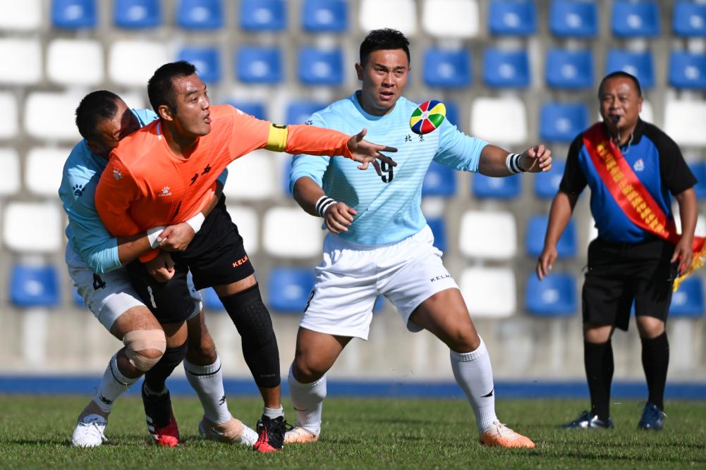 11月29日,廣西隊(duì)選手韋凱旋(左二)在比賽中傳花炮。新華社記者 李志鵬 攝