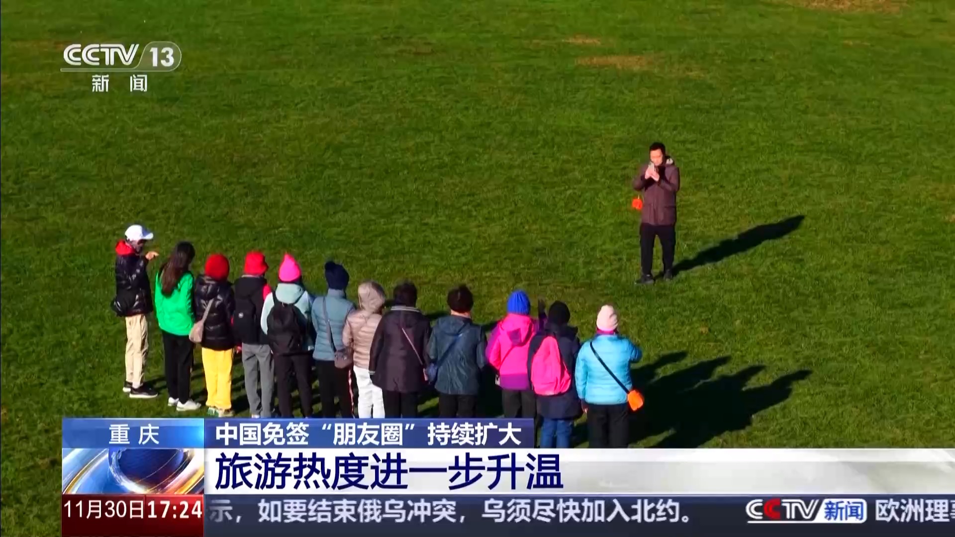 在重慶的著名旅游勝地武隆,各大景區(qū)接待的海外游客數(shù)量明顯增加,這些游客大多來自泰國、新加坡、馬來西亞等國家。29日一大早,重慶武隆仙女山景區(qū)就迎來了來自泰國的旅行團(tuán)。雖已入冬,仙女山仍然陽光明媚,滿目青翠,遠(yuǎn)道而來的游客或欣賞青山綠水,或與草原上的山羊合影,享受愜意時光。