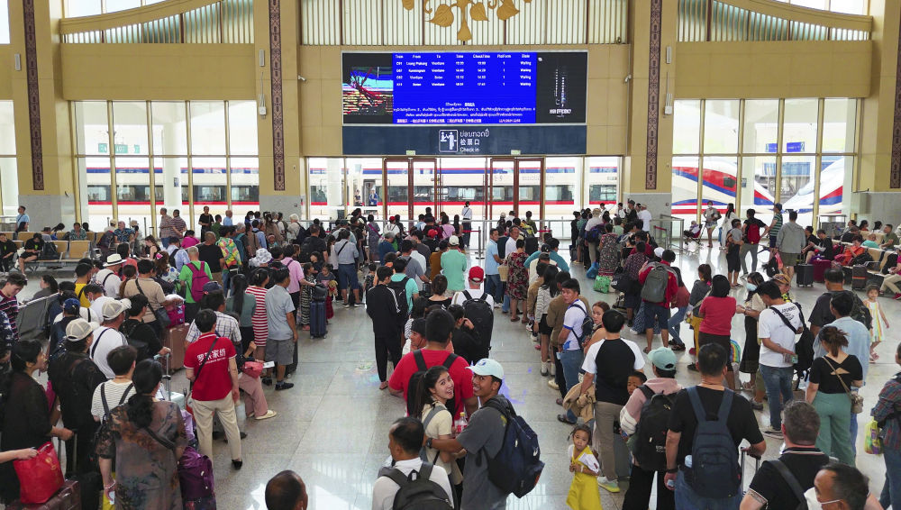 2024年4月12日,在中老鐵路老撾瑯勃拉邦站,旅客準(zhǔn)備檢票乘車。新華社發(fā)(楊永全攝)