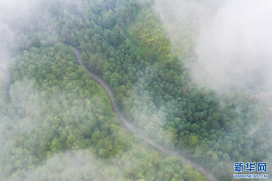 這是長汀縣水土保持科教園附近拍攝到的生態(tài)景觀。晨霧籠罩森林,寧靜而美好(無人機(jī)照片)。新華網(wǎng) 肖和勇 攝
