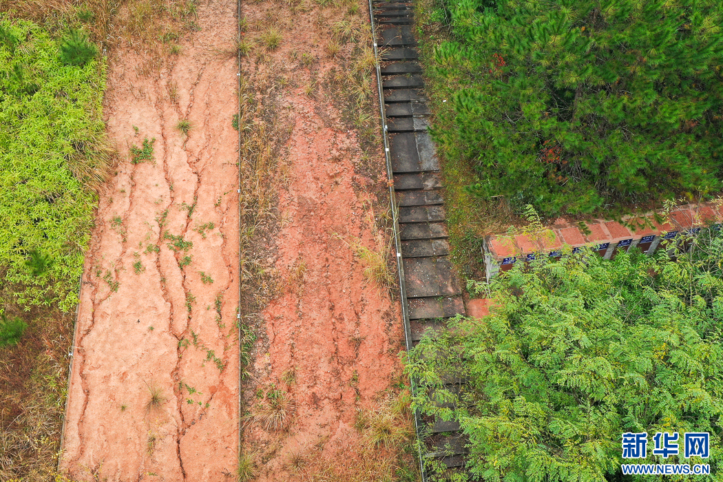 長汀縣水土保持科教園里的崩崗實驗對照區(qū)(無人機(jī)照片)。新華網(wǎng) 肖和勇 攝