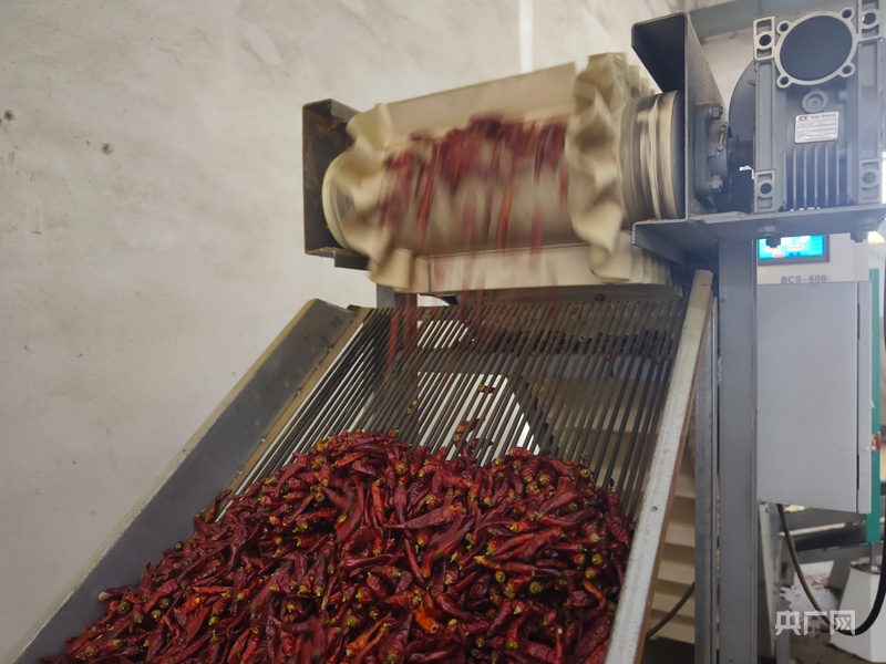 生產(chǎn)車間內(nèi)辣椒正在進行機械化處理(央廣網(wǎng)記者 欒小琳 攝)