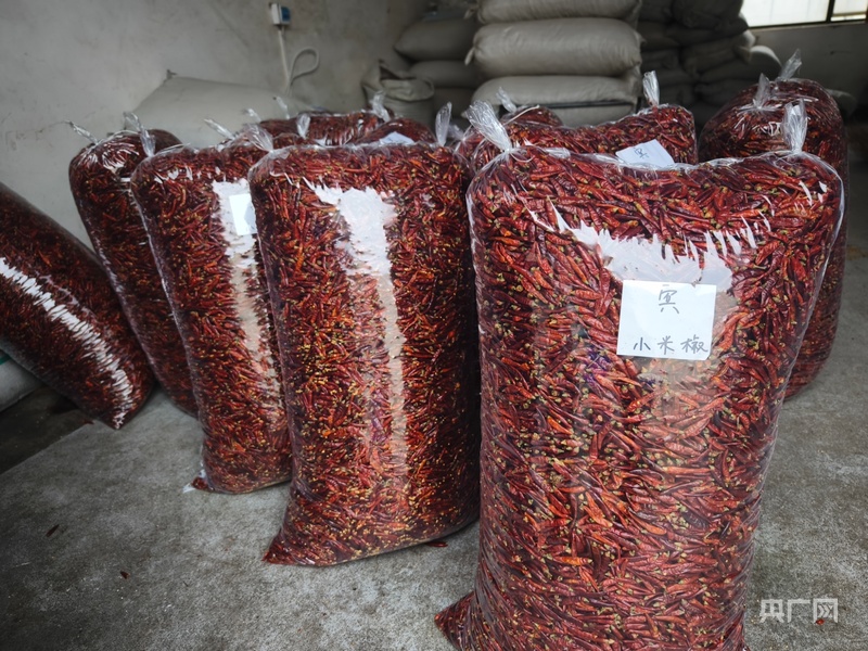 裝袋好的辣椒正等著運往各地(央廣網(wǎng)記者 欒小琳 攝)