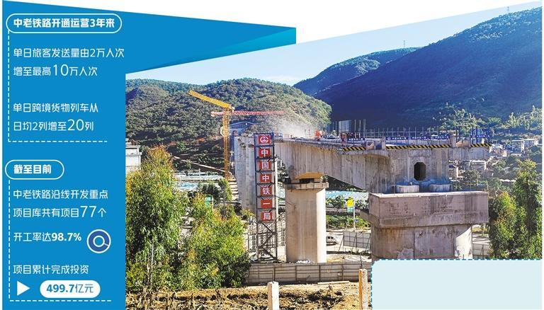 3年來,云南省搶抓中老鐵路機(jī)遇,以通道能力提升、物流樞紐建設(shè)、沿線產(chǎn)業(yè)開發(fā)和經(jīng)營(yíng)主體培育為重點(diǎn),切實(shí)打造一條開放發(fā)展的黃金道路。截至目前,中老鐵路沿線開發(fā)重點(diǎn)項(xiàng)目庫(kù)共有項(xiàng)目77個(gè),開工率達(dá)98.7%,項(xiàng)目累計(jì)完成投資499.7億元,投資完成率超66.7%,對(duì)促進(jìn)中老鐵路沿線開發(fā)發(fā)揮了重要作用。