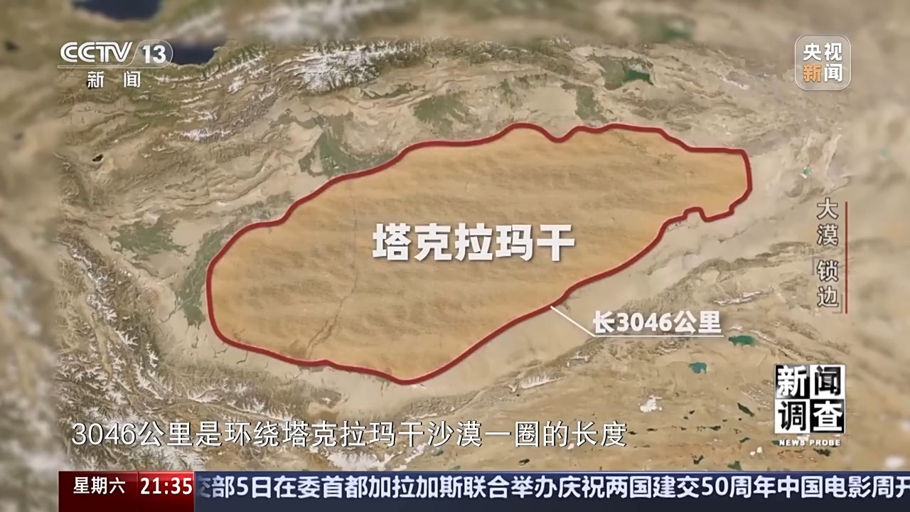 2023年6月,習(xí)近平總書記在內(nèi)蒙古巴彥淖爾市主持召開加強(qiáng)荒漠化綜合防治和推進(jìn)“三北”等重點(diǎn)生態(tài)工程建設(shè)座談會(huì),強(qiáng)調(diào)要打好河西走廊——塔克拉瑪干沙漠邊緣阻擊戰(zhàn)等三大戰(zhàn)役。3046公里,是環(huán)繞塔克拉瑪干沙漠一圈的長(zhǎng)度。過去40多年,依托“三北”防護(hù)林體系工程建設(shè),塔克拉瑪干沙漠周邊已形成長(zhǎng)達(dá)2761公里的綠色阻沙防護(hù)帶。截至2023年底,還剩285公里的空白區(qū)。塔克拉瑪干沙漠邊緣阻擊戰(zhàn)的首要任務(wù),就是要補(bǔ)齊缺口,給沙漠“鎖邊”。