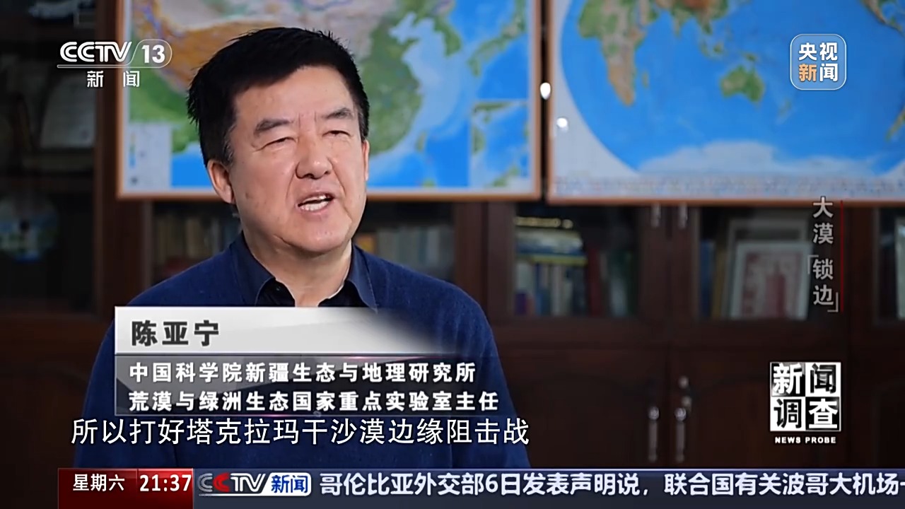中國科學(xué)院新疆生態(tài)與地理研究所荒漠與綠洲生態(tài)國家重點(diǎn)實(shí)驗(yàn)室主任 陳亞寧:和田地區(qū)大概就是256萬人,由于人均耕地面積少,經(jīng)濟(jì)發(fā)展相對(duì)也滯后。也是脫貧攻堅(jiān)成果鞏固和拓展難度最大的一個(gè)區(qū)域,所以在打好塔克拉瑪干沙漠邊緣阻擊戰(zhàn),對(duì)和田地區(qū)的經(jīng)濟(jì)社會(huì)發(fā)展、農(nóng)民增收是有著重要意義的。我們帶著隊(duì)伍進(jìn)行了將近兩個(gè)多月的實(shí)體調(diào)研,那我們調(diào)查什么呢?第一這里的地理環(huán)境、自然生態(tài)條件、水資源情況,同時(shí)我們也收集到他們當(dāng)?shù)剡@么多年防沙治沙的一些成功經(jīng)驗(yàn)和教訓(xùn),我們也進(jìn)行了訪談,結(jié)果我們就提出了一種從不同生態(tài)條件、不同沙害和不同水源條件下如何防沙治沙,實(shí)現(xiàn)沙漠鎖邊等一些建議、措施和總體規(guī)劃。