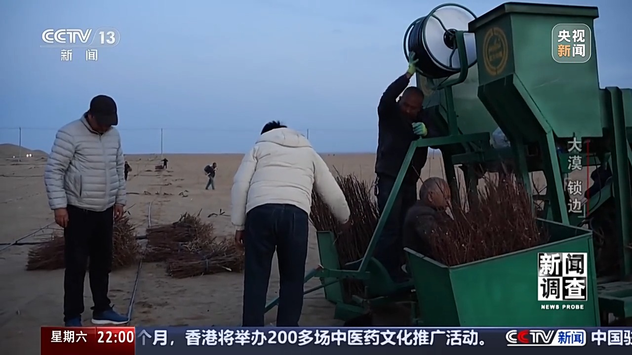 新疆于田縣林業(yè)和草原局黨組書記、副局長(zhǎng) 賈存鵬:首先我們要到實(shí)地去勘測(cè),只要能有水的,我們?nèi)渴巧镏紊?,沒水的地方是草方格和高立式沙障治沙。