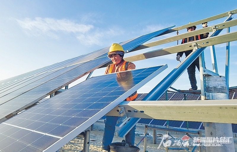 11月以來,在和田地區(qū)洛浦縣萬畝“光伏+農(nóng)業(yè)”綜合治沙項(xiàng)目基地,工人們在加緊安裝光伏板。今年3月,這個項(xiàng)目才剛剛動工,僅6個月,萬畝沙漠就變得平平整整,一列列光伏支架的底座水泥樁整齊列隊(duì),等待檢閱。