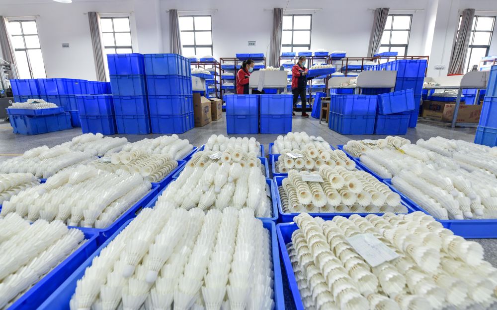敦寨鎮(zhèn)的羽毛球,還衍生出了包括羽毛球拍等產(chǎn)品和包裝在內(nèi)的眾多下游企業(yè)。其中一家公司生產(chǎn)的碳纖維羽毛球拍,每月可達(dá)3萬(wàn)支,大部分產(chǎn)品出口到東南亞等海外市場(chǎng)。