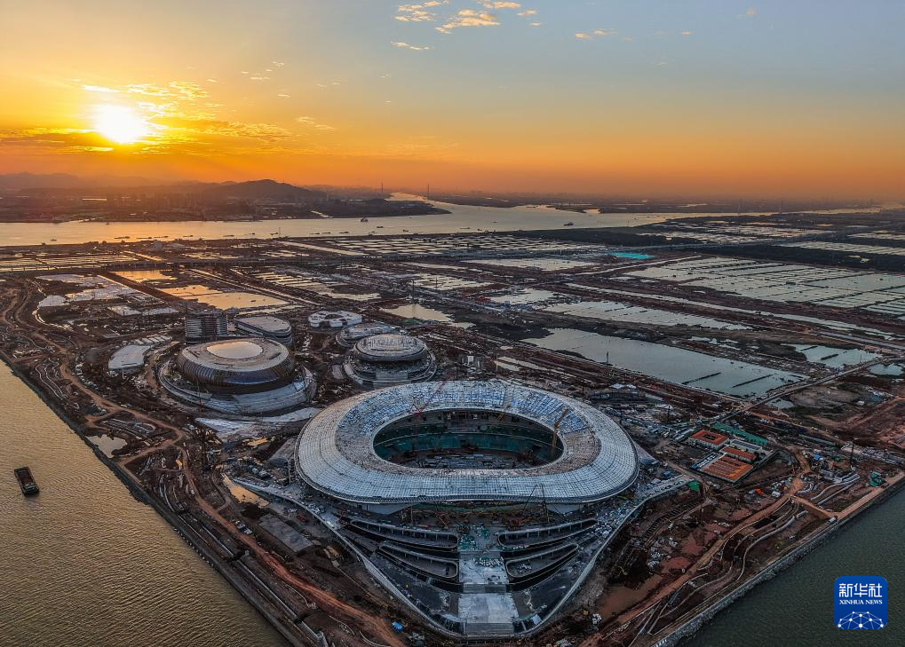 位于粵港澳大灣區(qū)“地理幾何中心”的廣州南沙全民文化體育綜合體建設進展順利(2024年11月27日攝,無人機照片)。