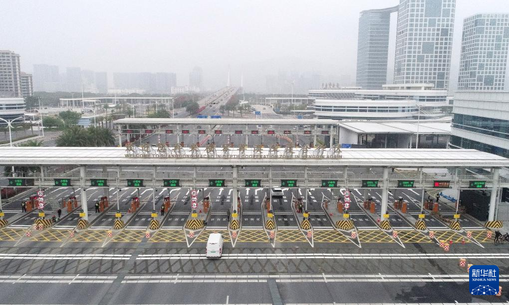 這是橫琴大橋“二線”通道海關監(jiān)管區(qū)(2024年2月29日攝,無人機照片)。